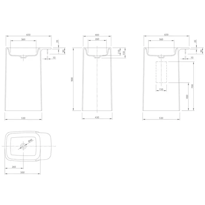 KNIEF Pride Раковина 67х43х90 см, без отв., отдельностоящая, выход в пол, цвет: белый матовый