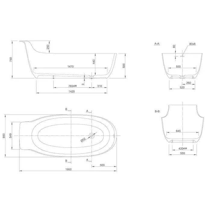 Knief Prime Ванна из K-Stone отдельностоящая 195х85 cм, со сливом-переливом, цвет: белый матовый 0600-010-01