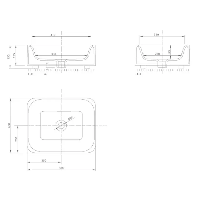 KNIEF Shine Раковина 50х40х15 см, без отв., накладная, без перелива, с LED подсветкой, цвет: белый матовый