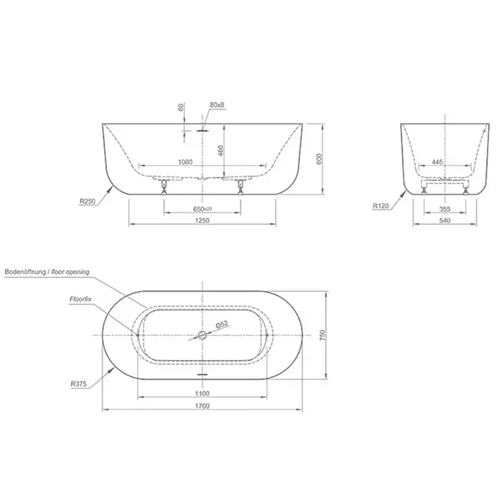 KNIEF NICE Ванна акриловая отдельностоящая 170х75х60H, щелевой перелив, белая глянцевая(продавать с переливом 0100-091-06S)