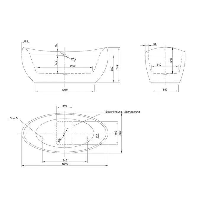 KNIEF Venice Ванна отдельностоящая 180x83,5x74,5 см с экраном, цвет: белый