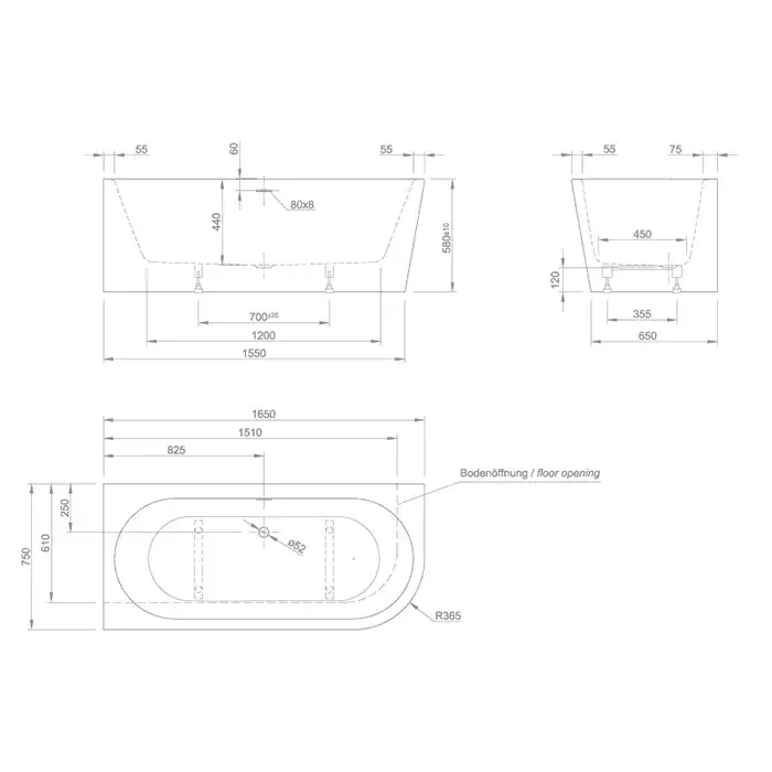 Knief Wall Corner R Ванна из Acrylic угловая 165x75 см, левая, без слива-перелива, цвет: белый 0100-255-R