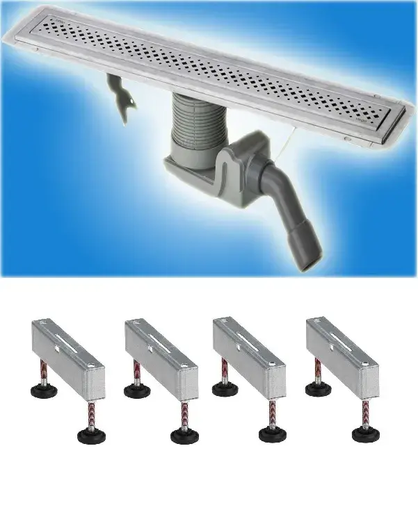 Комплект: душевой лоток Visign с дизайн-решеткой ER1,(X1),от 0.5-0.7 л/с, с гидрозатвором и съемным грязеуловителем+опора душ.лотка 100см, нерж.сталь