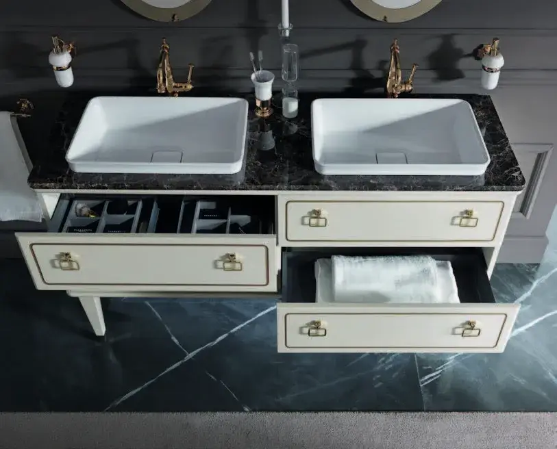цвет-AVORIO LUCIDO, декор и ручки-золото/MARRONE IMPERIALE/AMBRA