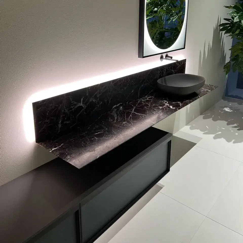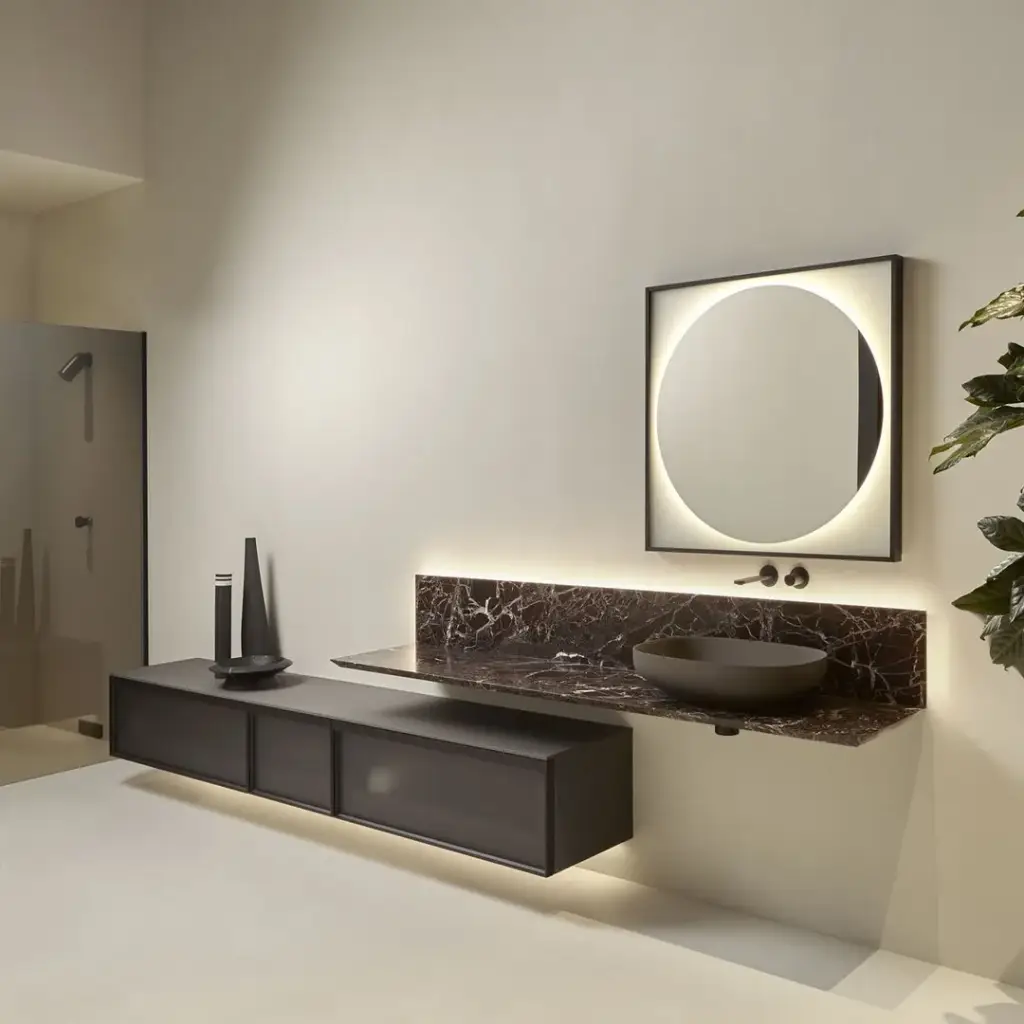 BASALTO SETA/рама-NERO OPACO/стекло-ACIDATO FUME/мрамор ROSSO LEVANTO/раковина COLORMOOD BASALTO