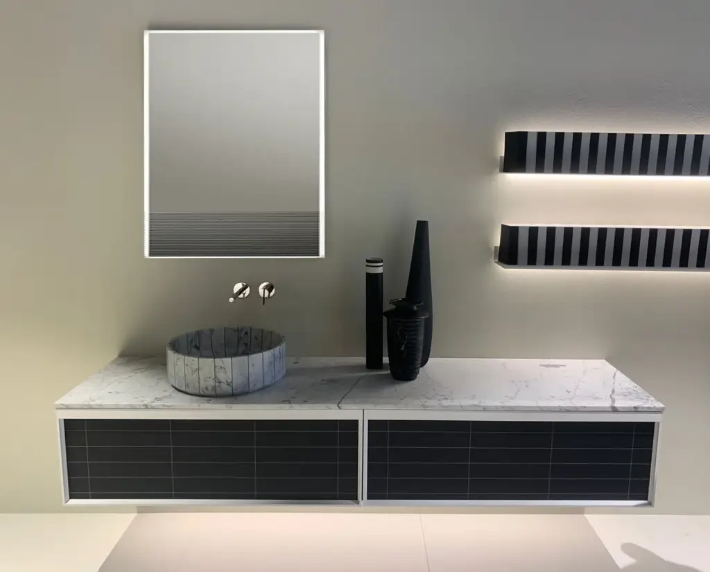 Antonio Lupi Bemade Комплект подвесной мебели с тумбой под раковину, раковиной Graffio, зеркалом Tratteggio, повдесным шкафом, 72 см, цвет: белый матовый