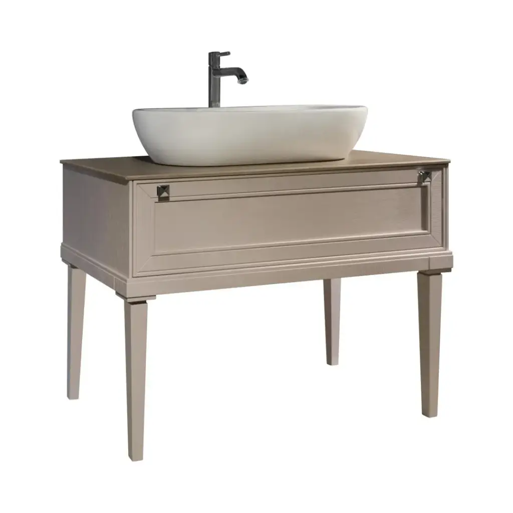 Комплект мебели с раковиной Arbi AUGUSTO L862M(LG)-P02 + A133 (LG) *2 + A031 + 5698 + 043 лак матовый corda, ручки P02 хром, laminam fokos terra