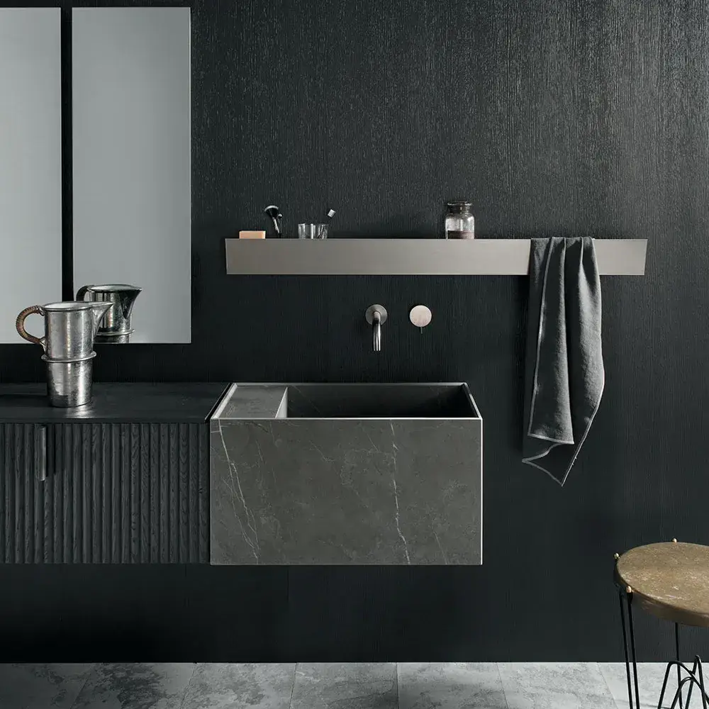 тумба-ROVERE INCHIOSTRO-823/топ-LAMINAM PIETRA GREY OPACO-AV/раковина-LAMINAM PIETRA DI SAVOIA ANTRACITE-AG