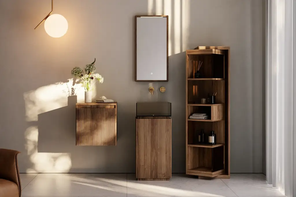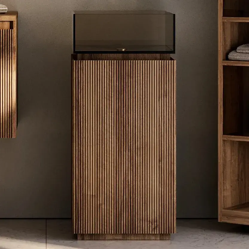 Комплект мебели с раковиной Artelinea PLISSE’ COLLECTION PY41D (PYD41D+BPL40) GROOVE NOCE-GR, топ-BRONZO-B6, раковина-TRASPARENTE BRONZO