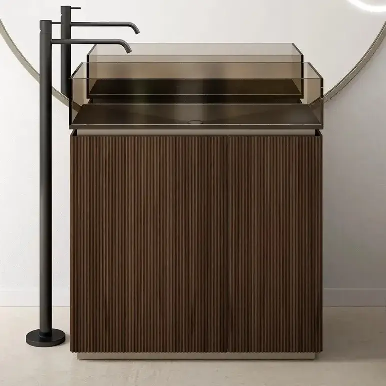 Комплект мебели с раковиной Artelinea PLISSE’ COLLECTION PY81D (PYD81D+BPL80) GROOVE NOCE-GR, топ-BRONZO-B6, раковина-TRASPARENTE BRONZO