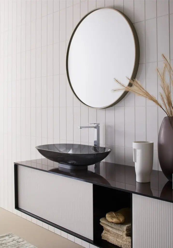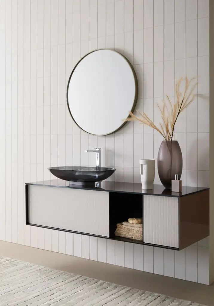 Комплект мебели с раковиной Artelinea Quadra QUP69+QUT29+QUVN+RQUC+KQUC+B.90 FU фронт flutes bianco (B3)/топ и корпус cashmere silk (E3)