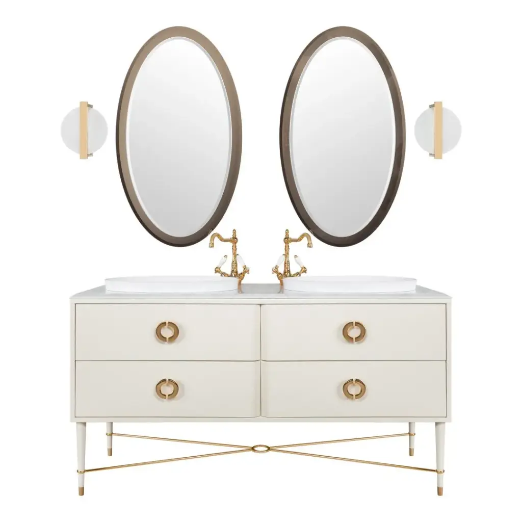 Комплект мебели с раковиной Mia Italia SOHO SOHM4CA15015.50+SOHTM1502CEOV.90+MLCERIOV013*2+SOHSM060105.AM*2+MLPO16.50*2 polish ivory, ручки и декор золото, мрамор bianco carrara