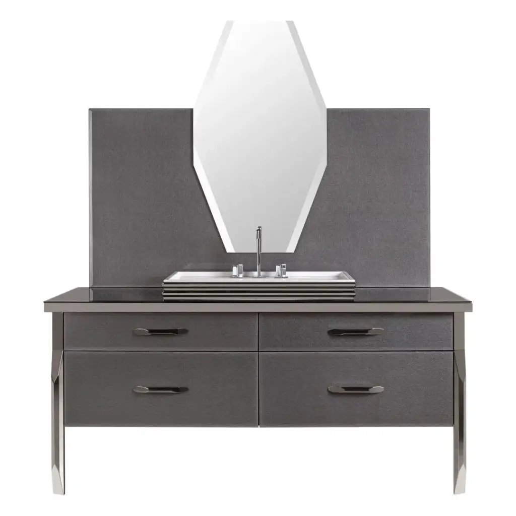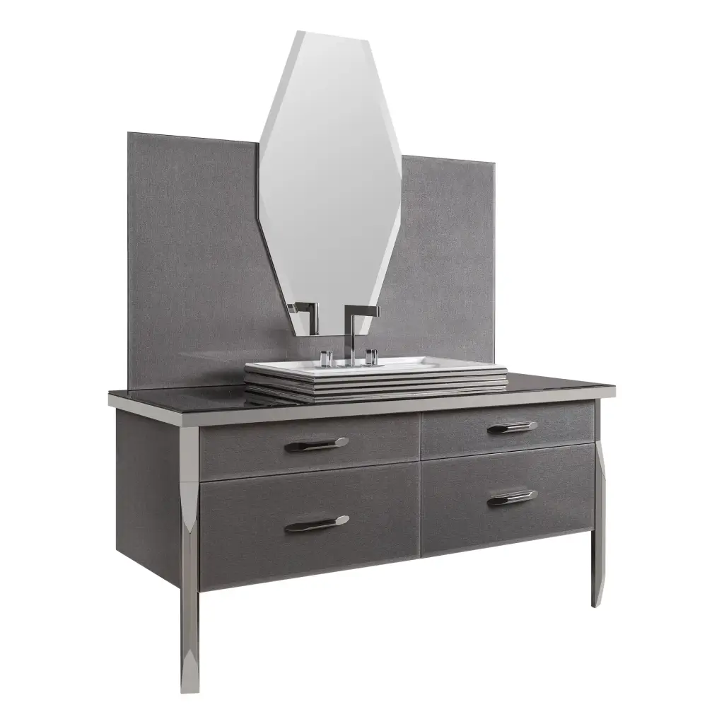 Комплект мебели с раковиной Milldue Hilton 3051+9226+5815+5818+5810.sx+5810.dx+3045A*2+5819 93 twill smoke, polished steel, matt nero lacquer - 22