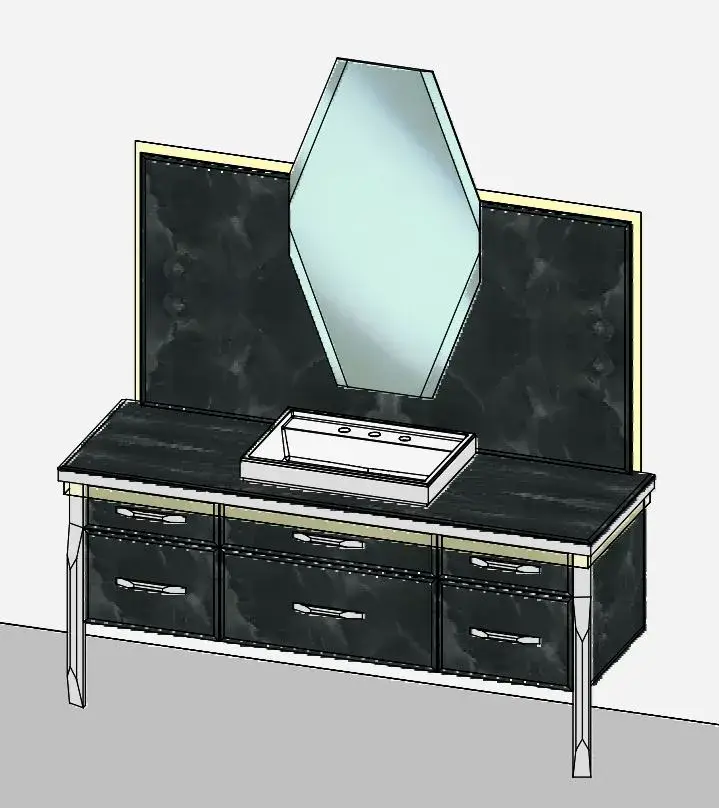 Комплект мебели с раковиной Milldue Hilton 3054*2+3046+9264+5815+5810.dx+5810.sx+5818+2486*2+2473+5819 95 onice smoke, matt nero lacquer 22, polished steel