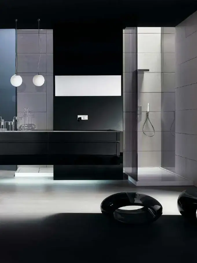 Комплект мебели с раковиной Milldue Kubik 6939+5872*2+4899*2+1309+7103*5+OPM110+1320+4066+7080*2+1303 черный глянец