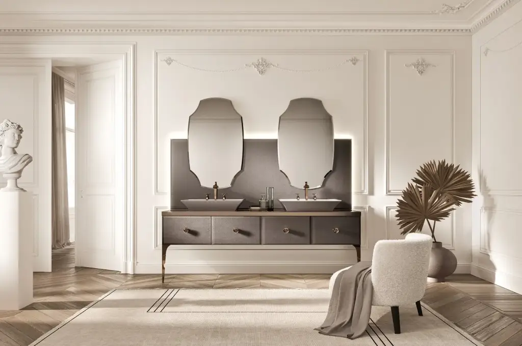 Комплект мебели с раковиной Milldue MAJESTIC 3233+9847+4138+5818+9767+3290.sx+3290.dx+2488*2+4057 elephant bronze 79, acciaio bronzo 91, matt nero lacquer 22