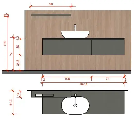 Комплект мебели с раковиной Milldue SINTESI 8364+8369+2912+4061.SX+8887+9041.DX+9041.SX+2493+2951 цвет-SILLMATT TORTORA-502, GOLA M90