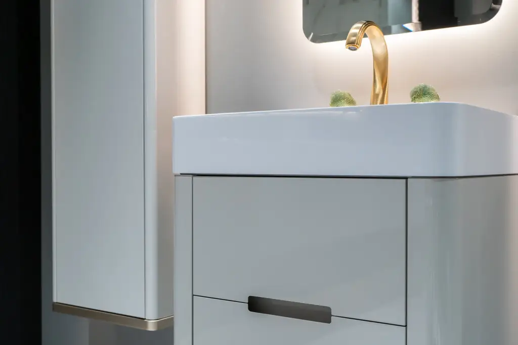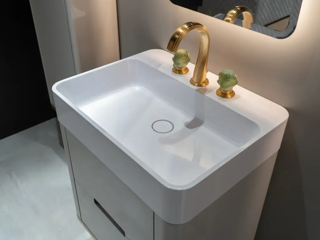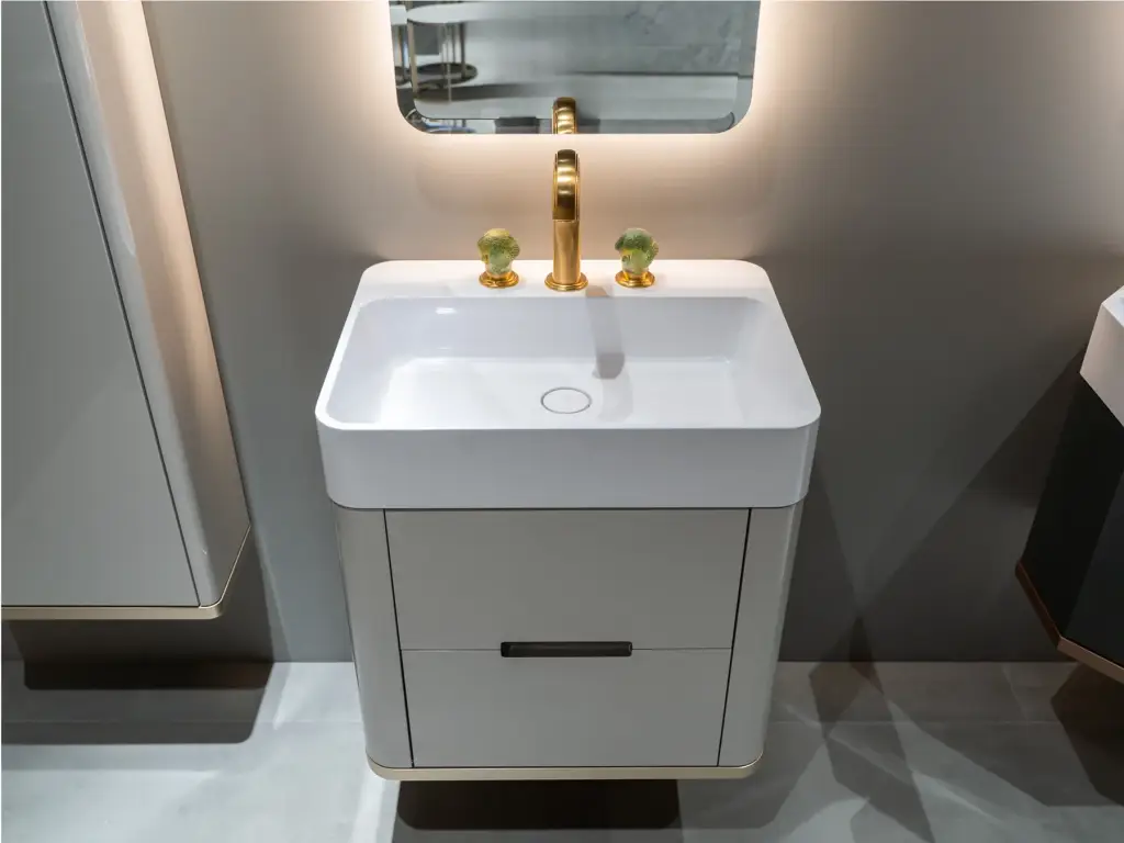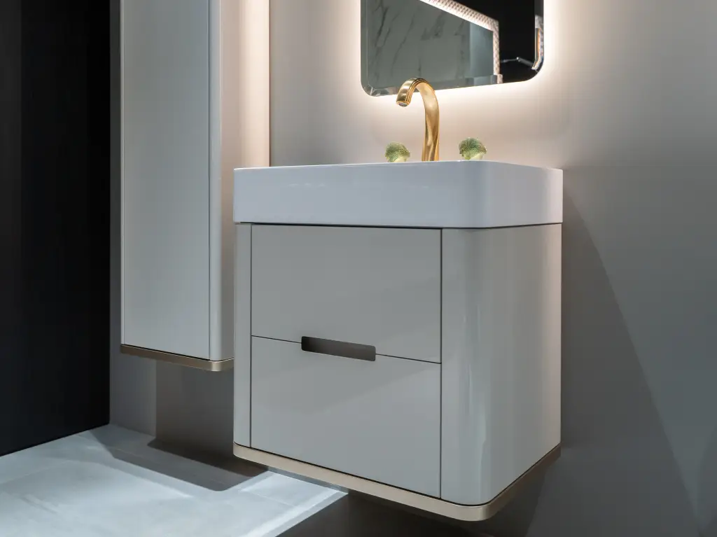 Комплект мебели с раковиной Milldue TAILOR 7569+7555.DX+7555.SX+7518+7644+7649.SX+7647.DX+7647.SX+7519.33 цвет-LACCATO LUNA LUCIDO-119/ORO SATINATO-330