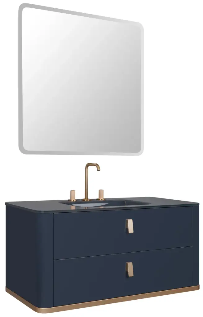 Комплект мебели с раковиной Milldue TAILOR 7583+7555*2+7518+2474+7646+7649+7647*2+7519 Dx+7799 special laccato zaffiro lucido, топ vetro inntegrato zaffirro, ручки и профиль oro laccato satinato