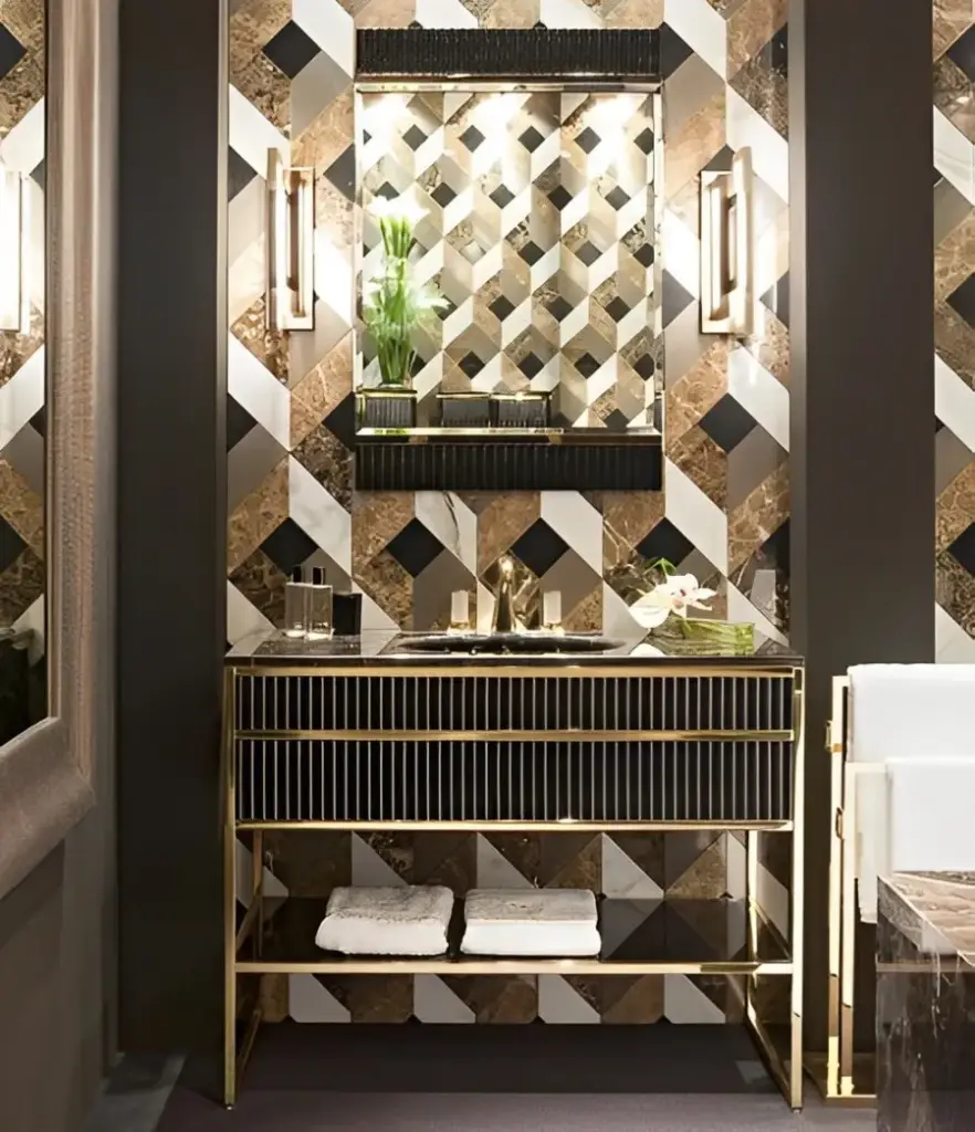 стекло RIBBED NERO-100/золото, топ-CALACATTA ORO, раковина-белая керамика