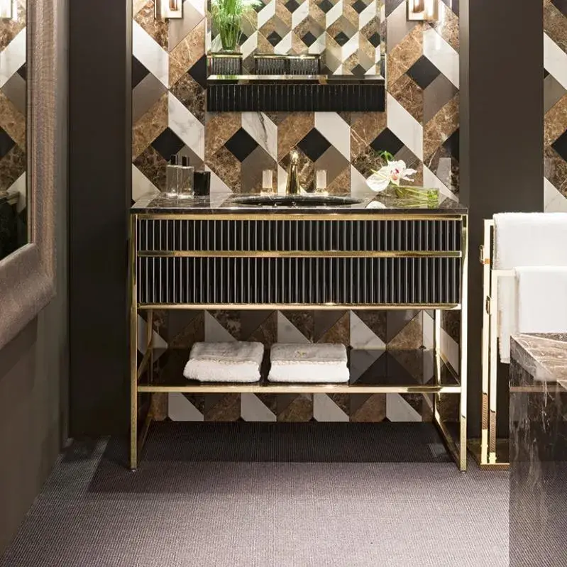 Комплект мебели с раковиной Oasis ACADEMY 0ACV110OR+0ACTM110LMQ3+0ACLINB+0ACSPV066OR стекло RIBBED NERO-100/золото, топ-NERO MARQUINIA, раковина-черная керамика