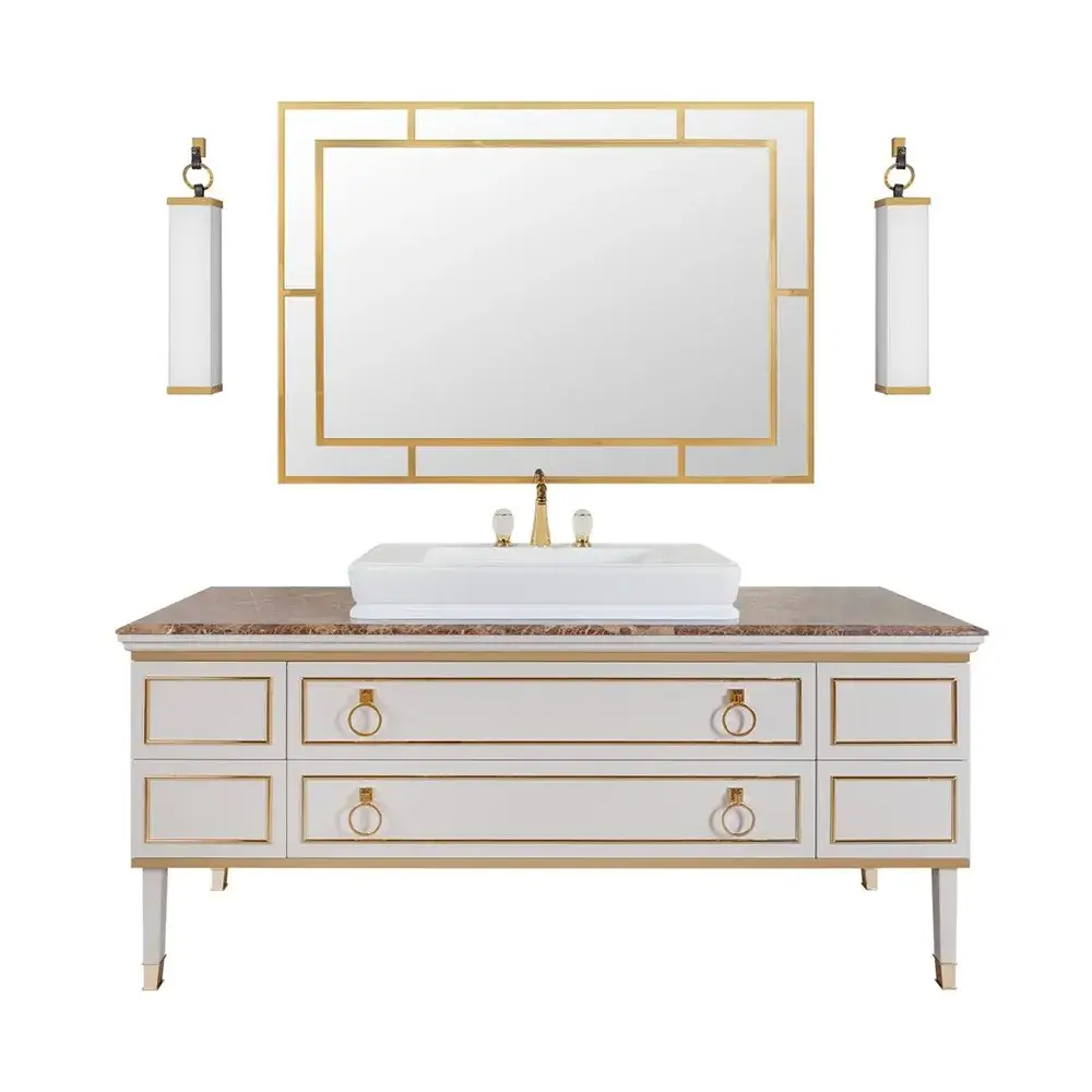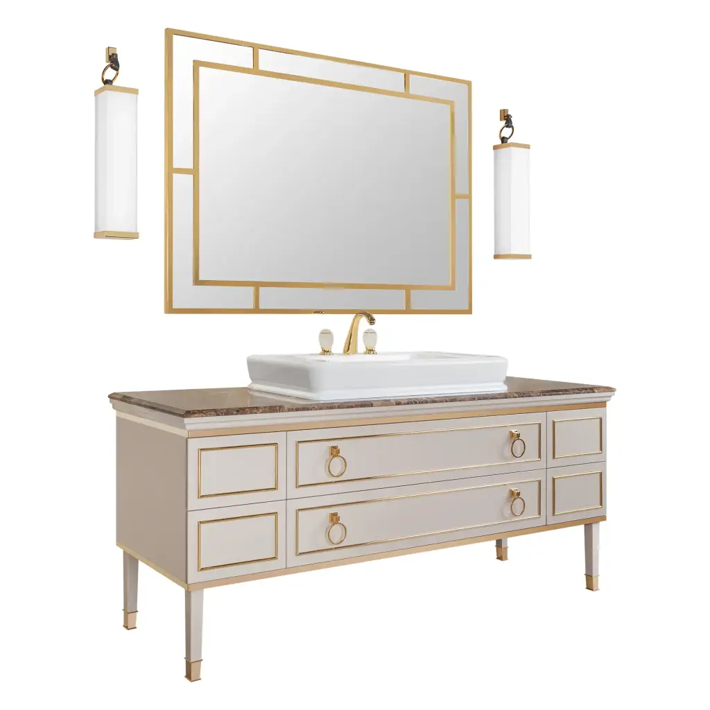 Комплект мебели с раковиной Oasis Lutetia 0LUTCP607756180OR + 0LVBSPR00000002 + 0LUTTM100256180LED + 0CSBAR110000141 G164 Lino/Emperador Dark/золото