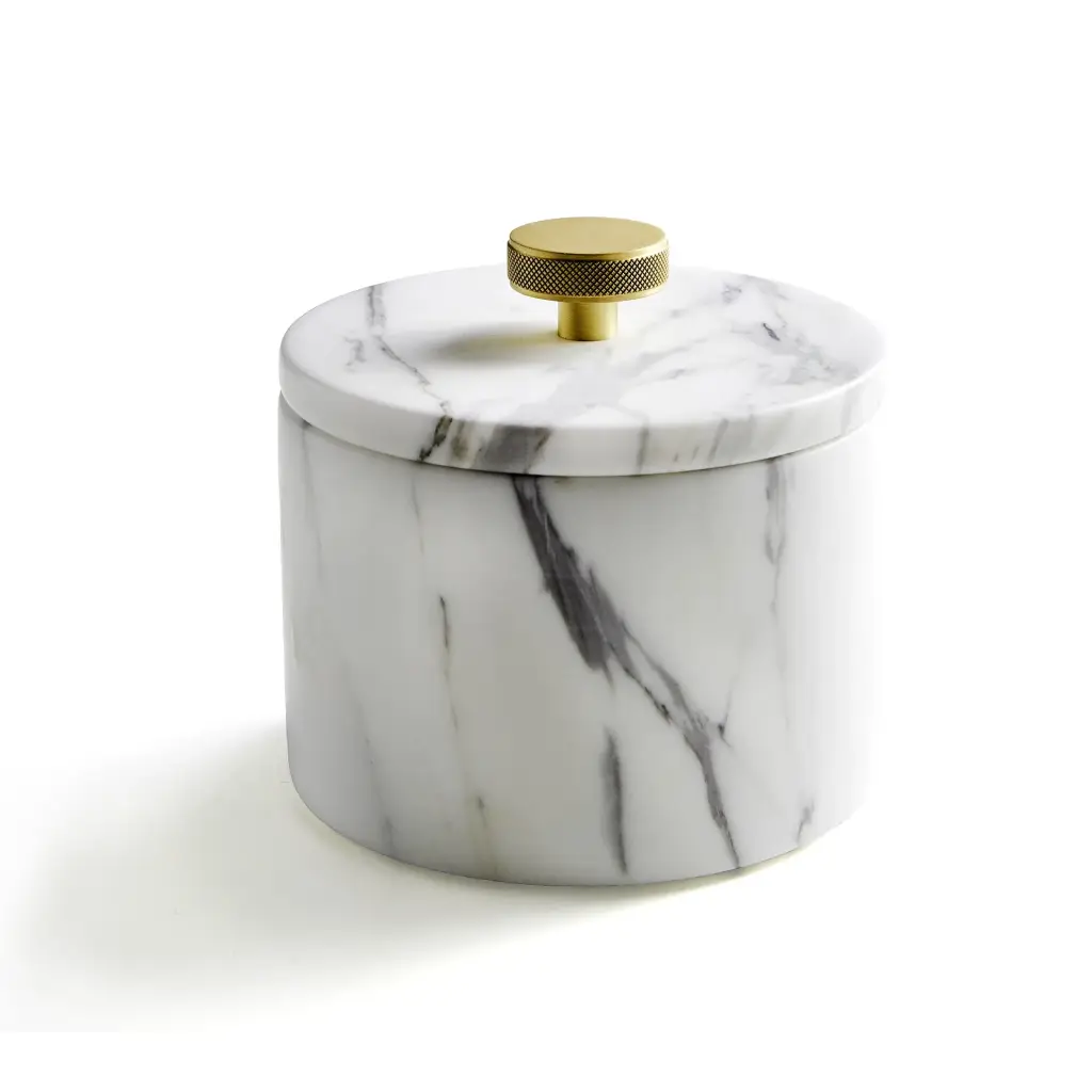 Контейнер для ватных дисков/палочек 3SC APUANA 2.0 AP48ALX мрамор BIANCO STATUARIO/MATT SATIN BRASS