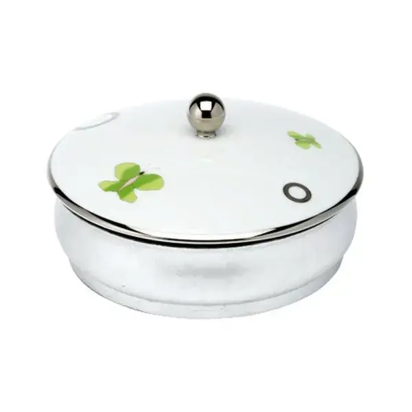 Контейнер с фарфоровой крышкой d18*h10, декор зеленый