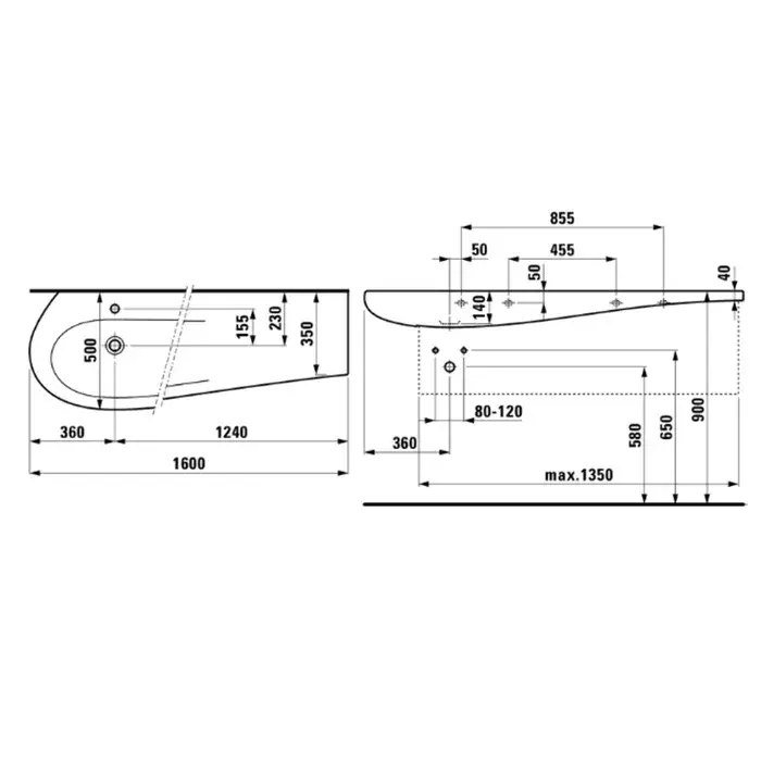 Laufen Alessi One Раковина 160х50хh16,5 см, без отв., полка справа, цвет белый 8.1497.1.400.109.1