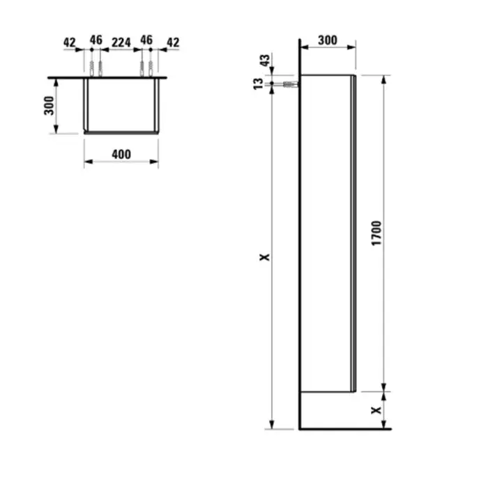Laufen Alessi One Шкаф подвесной, 40х30хh170 cм, 2 полки, 2 ящика, SX, цвет орех 4.5803.2.097.630.1