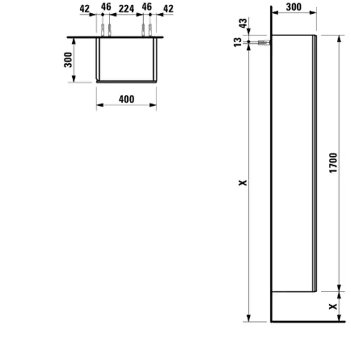 Laufen Alessi One Шкаф подвесной, 40х30хh170 cм, 4 полки, SX, цвет орех 4.5801.1.097.630.1