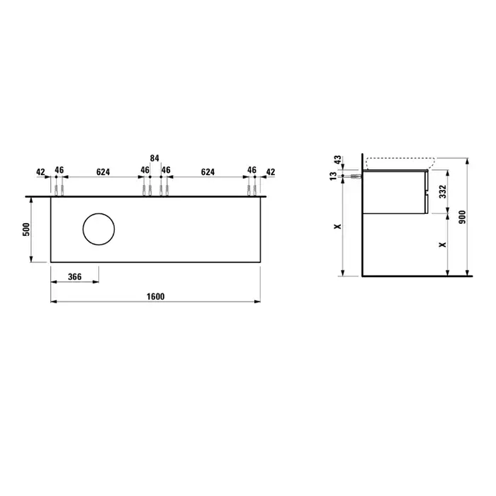 Laufen Alessi One Тумба под раковину, 160х50хh33 см, с 4 ящиками, SX, цвет орех 4.2426.1.097.630.1