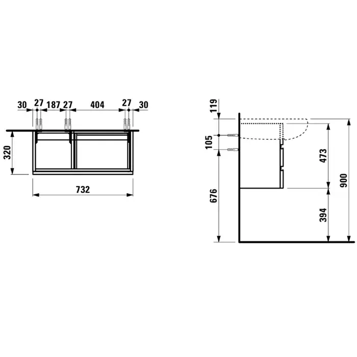 Laufen Alessi One Тумба под раковину, 73х32хh47,5 см, с сифоном, цвет орех 4.2447.0.097.630.1