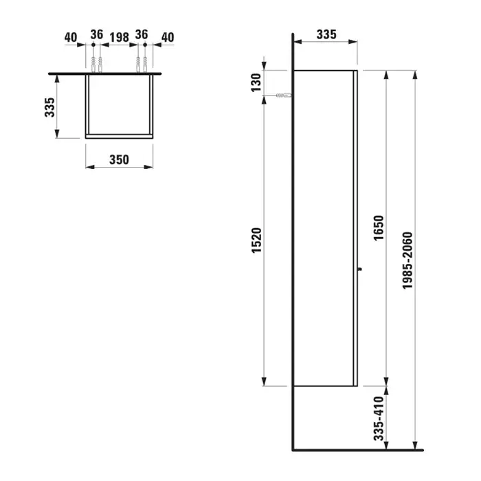 Laufen Case Шкаф подвесной 35х33,5хh165 см, цвет: белый матовый 4.0202.1.075.463.R