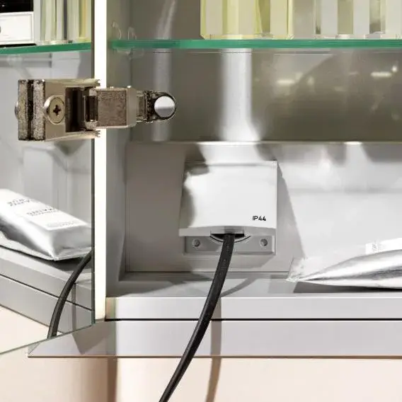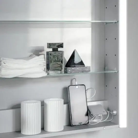Laufen Frame 25 Зеркальный шка 45x15x75см., алюминий, 1 дверца с зеркалом с 2х сторон, SX, сенс. выкл., 2 розетки, 2 верт-х эл-та LED-подсветки (регул-ая яркость), с окружающим освещением (внизу), цвет: белый