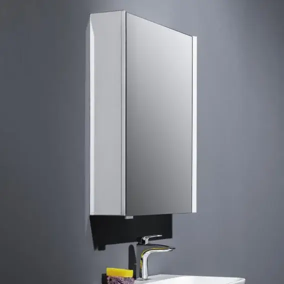Laufen Frame 25 шкаф зеркальный 60x15x75cм., алюминий, 1 дверца с зеркалом с 2х сторон, SX, сенс. выкл., 2 розетки, 2 верт-х эл-та LED-подсветки (регул-ая яркость), с окружающим освещением (внизу)