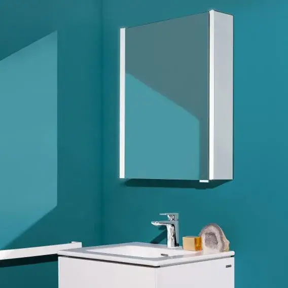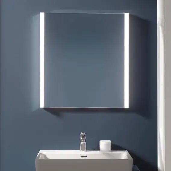 Laufen Frame 25 шкаф зеркальный 60x15x75cм., алюминий, 1 дверца с зеркалом с 2х сторон, SX, сенс. выкл., 2 розетки, 2 верт-х эл-та LED-подсветки (регул-ая яркость), с окружающим освещением (внизу)