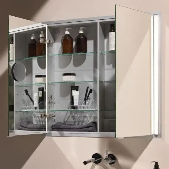 Laufen Frame Зеркальный шкаф 120x75см., LED-подсветка, алюминий, 3 двери, 2 розетки