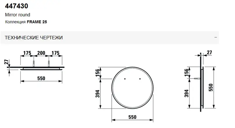 Laufen Frame 25 Зеркало круглое с подсветкой, подвесное 55х3х55h см, 4.4743.1.900.144.1