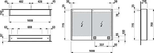 Laufen Frame 25 шкаф зеркальный 60x15x75cм., алюминий, 1 дверца с зеркалом с 2х сторон, SX, сенс. выкл., 2 розетки, 2 верт-х эл-та LED-подсветки (регул-ая яркость), с окружающим освещением (внизу)