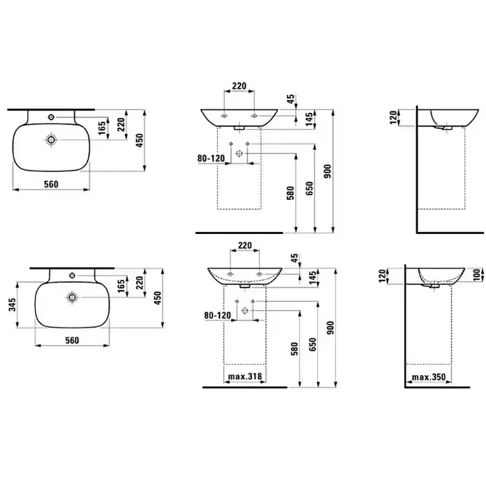 Laufen INO Раковина 560х450х120мм без отв. под смеситель, цвет: белый