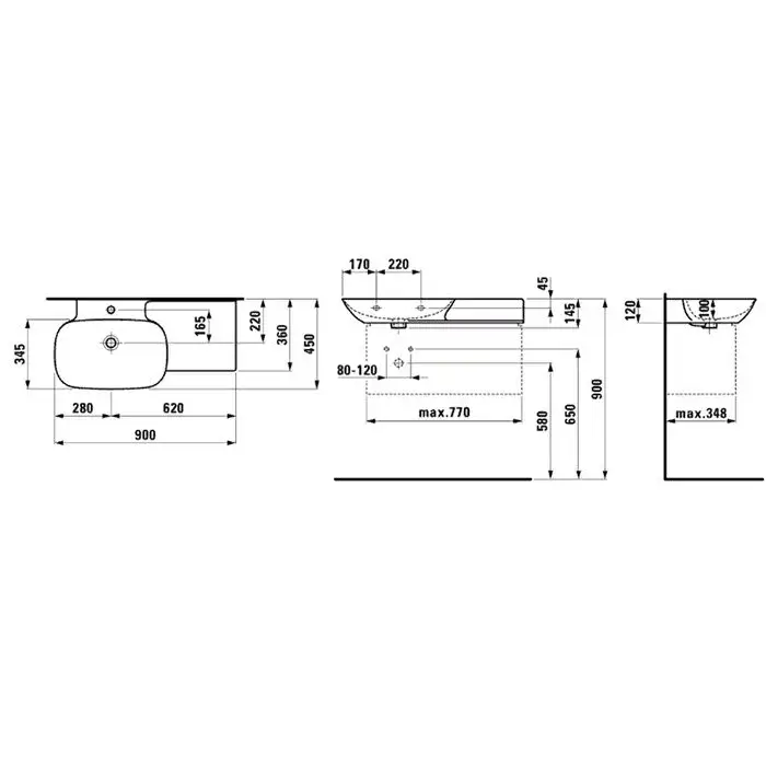 Laufen Ino Раковина 90х45хh12 см, без отв., полка справа, с покр. LLC, цвет белый 8.1330.2.400.109.1