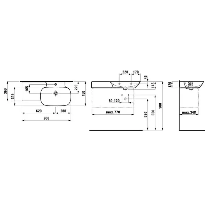 Laufen Ino Раковина 90х45хh12 см, с 1 отв., полка слева, с покр. LLC, цвет белый 8.1330.1.400.104.1
