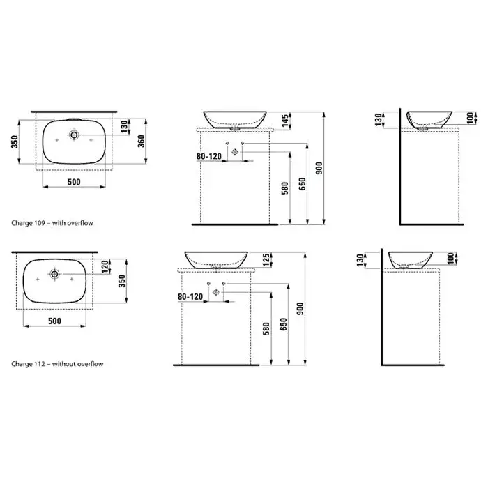 Laufen Ino Раковина-чаша 50х35хh13 см, без отв. под смеситель, цвет белый 8.1230.2.000.109.1