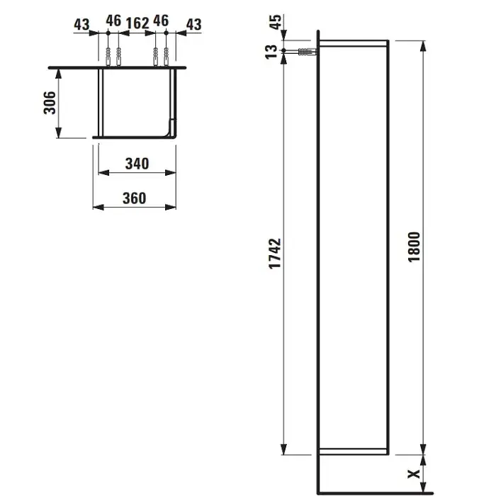 Laufen INO Шкаф подвесной, 36х30.5х180см, с 1 дверцей, SX, цвет: темный орех