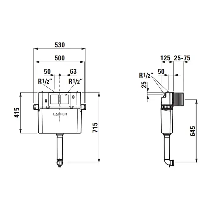 Laufen Installation System LIS бачок скрытый 53x20x72см для напольного унитаза, двойной смыв 6/3 л