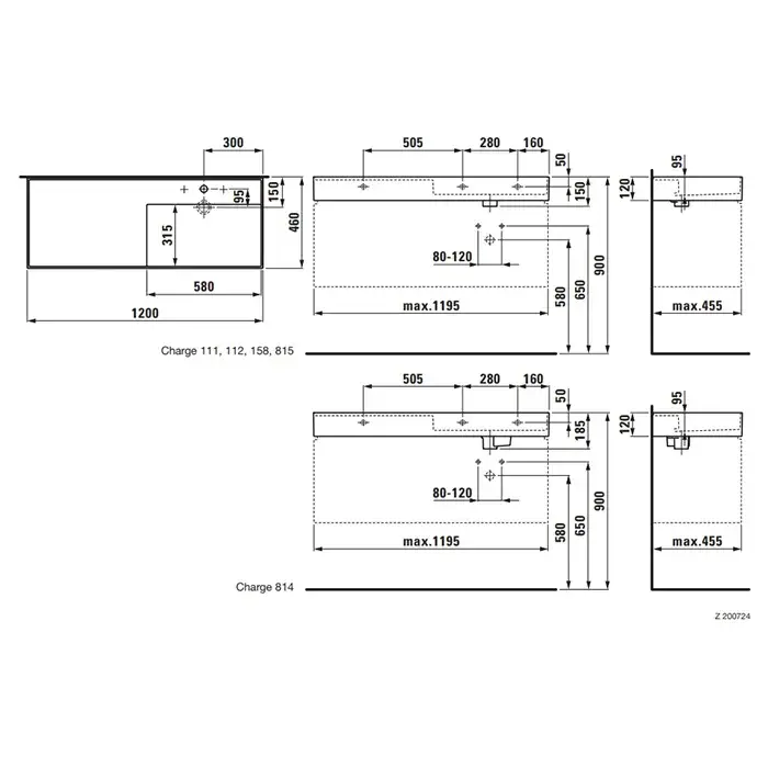 Laufen Kartell Раковина 120х46хh12 см, без отв., под смеситель, цвет: белый 8.1333.3.000.112.1