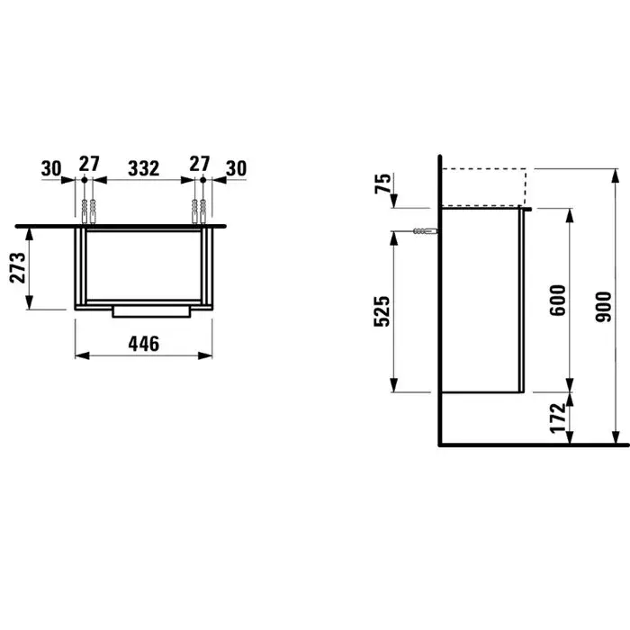 Laufen Kartell Тумба под раковину справа, 120х27х61см, с 1 дверцей и 2 створками, подвесная, покрытие LLC, цвет: белый матовый