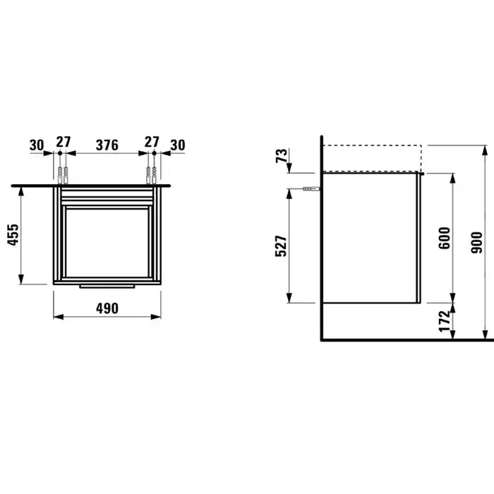 Laufen Kartell Тумба под раковину слева, 120х27х61см, с 1 дверцей и 2 створками, подвесная, покрытие LLC, цвет: серая галька