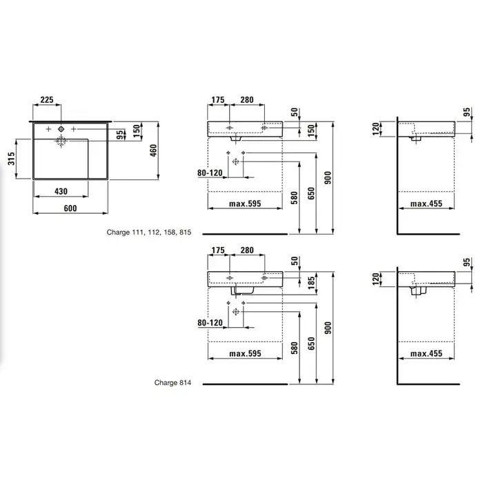 Laufen Kartell Раковина 60х46хh12 см, с 1 отв., под смеситель, цвет: серый мат. 8.1033.4.759.111.1